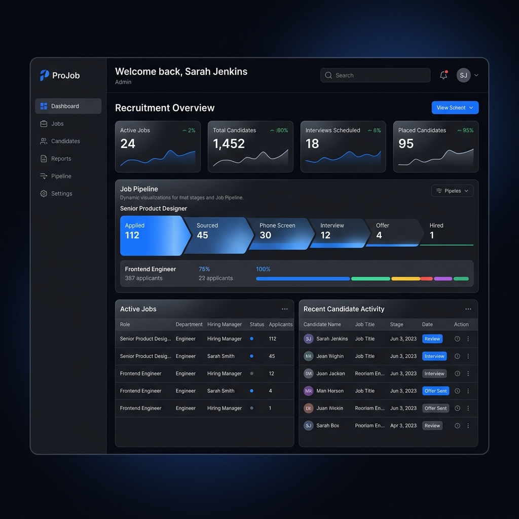 - 2.Applicant Tracking: Real-time candidate pipelines and interview scheduling dashboard.